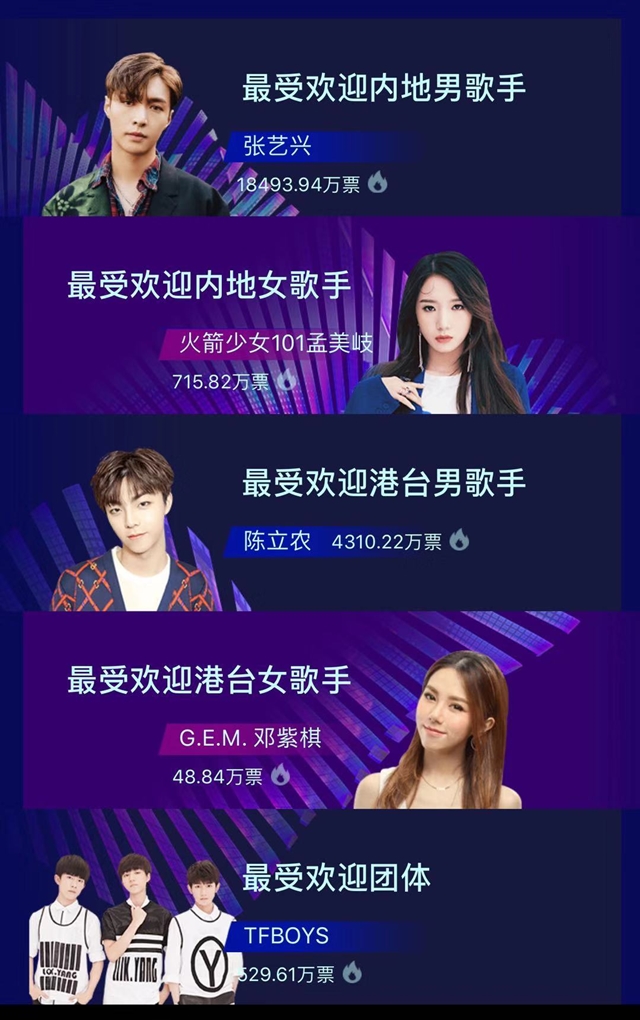 12月8日,我们来到了流媒体平台举办盛典的新时代,在一场由QQ音乐、酷狗音乐、酷我音乐和全民K歌举办的TMEA腾讯音乐娱乐盛典中,邓紫棋、张艺兴、火箭少女101等耳熟能详的偶像名字一一在列,而久违的TFBOYS也合体参加了该活动,而在以往这些熟悉的名字或许只会出现在更为传统、更为大型的音乐盛典上。