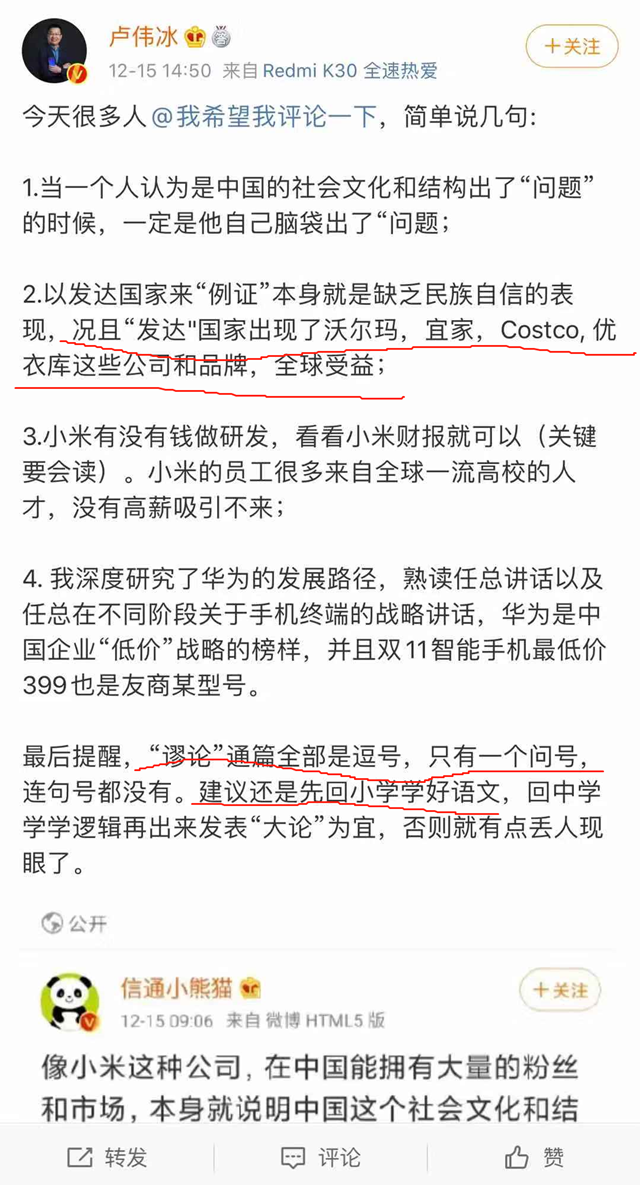 先不说性价比是否真是小米的“罪”,你认为卢伟冰的回怼有理吗?