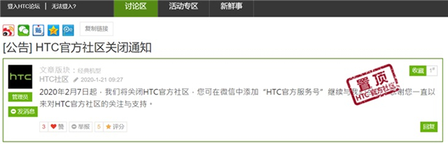 先是前后关闭了天猫和京东的官方旗舰店,前几天,生意惨淡的HTC又宣布将关闭铁杆粉丝聚集的HTC官方社区,而终止的日期好巧不巧就是明天(2月7日)。明眼人都能看出,关闭社区的潜台词除了无力维持官方服务外,更深层的含义恐怕是要放弃手机业务。