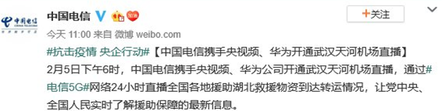 不得不提的是,此次电信5G直播武汉天河机场实况也成为继“火神山”医院建造直播后的另一项创举。
