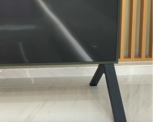 为了支撑这么大的电视重量,夏普使用了两个超大的三脚架来支撑。整体观感上缺乏了一些美观,而且三脚架的高度并不高,坐在沙发上看这么大的电视本身头就需要大幅度转动去观看画面,如果电视最下方的显示区域非常低于视线的话,不光眼睛累,心也累。另外现在的家庭都为电视配备了电视桌,如此大的三脚架,显然可能放不下,希望夏普能再设计的合理一些。