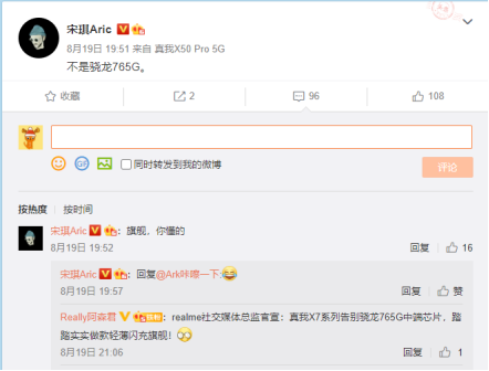 在昨天和今天的预热文案中,可以看到这款新机屏幕将会搭载120Hz刷新率的屏幕,并且使用了COP封装工艺,整个下巴将会更窄,屏占比近一步提升。而在处理器上,网友们猜测Realme真我X7将会使用的是高通骁龙765G ,不过这个传言被Realme社交媒体总监宋琪给否认了。