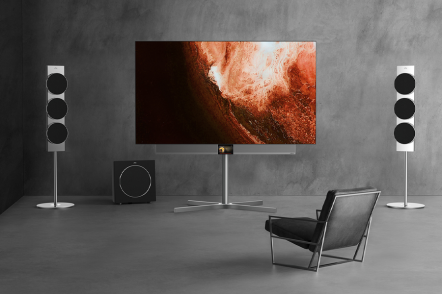 回到正面屏幕上来,77英寸的屏幕在极窄边框下的观感非常震撼。这块屏幕是4K分辨率,120Hz刷新率的OLED屏幕,在画面对比度,可视角度以及清晰度上都达到了全新画质标准。其内部的变色龙AI画质芯片,对于画面显示的精准把控和AI技术的运用,使得这块屏幕的影像更加通透立体,场景过渡更加自然。美兹雕塑1还内置了一块独立MEMC运动补偿芯片,让每一帧画面都变得无比流畅。而它也支持到了现在最先进的WiFi 6和杜比视界,流畅体验加上身临其境的画面表现,8K分辩率也不再是刚需。