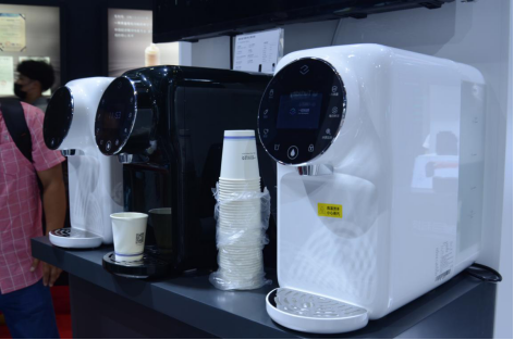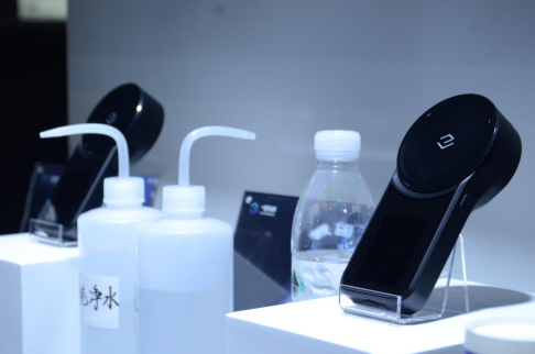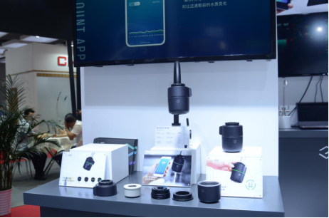 在1.2净水展馆里,一目科技展示了其在净水上的实力。不仅有手持的水质检测仪,还有龙头净水器以及智能监测即热式净饮机等多款产品。