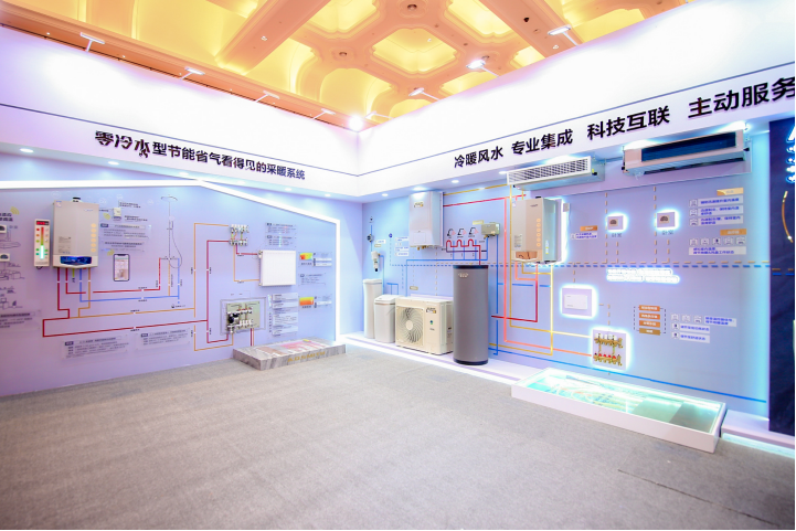 A.O.史密斯精心挑选核心品类,包括热水、采暖、空调、新风、中央净、中央软、油烟机,集锦在集成系统中,通过AI-Link智能物联平台,让原本是一座座孤岛式的产品设备,实时根据用户所需,自主联动运行不同模式,创新实现场景化智能一键操控,创造新的体验和价值。