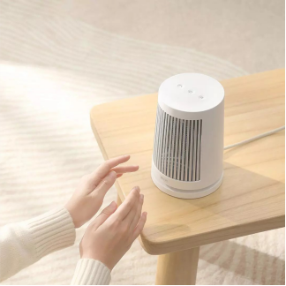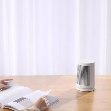 这款桌面暖风机非常的小巧,所以它不能给房屋整体供暖,仅仅用来暖手和局部身体也是不错的。该暖风机采用了白色的整体设计,像灯罩一样的造型保证了摆放的稳定性。发热材质上使用了PTC 陶瓷发热体,可以做到即开即热,在送暖时还会进行45°摇头循环转向柔和送风。