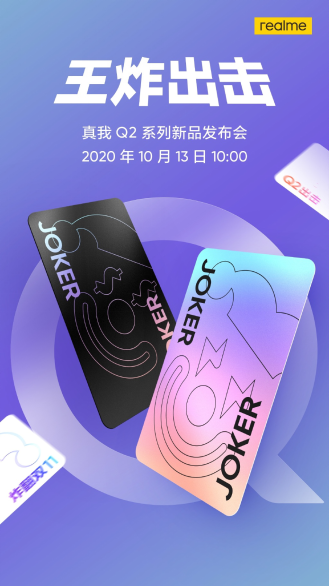 10月10日消息,今天不止华为宣布了Mate40 系列手机的发布时间,Realme 手机也宣布了真我Q2 系列手机将于10月13日早上10点召开新品发布会,而其主题为“王炸出击”。从其发布时间来看,应该还是一场线上发布会。
