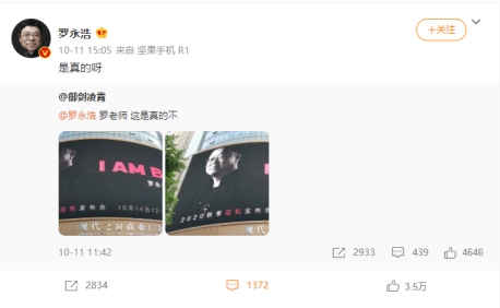 罗氏脱口秀回归 罗永浩将于10月14日召开旧机发布会