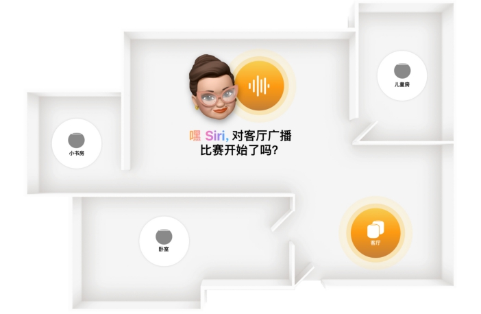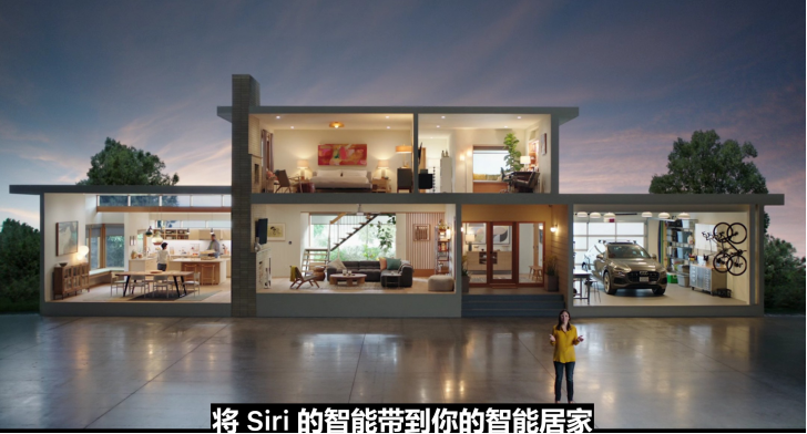 然而最令我惊喜的是它在交互上的突破,拥有两个HomePod Mini,就可以实现立体声效果。如果你有许多HomePod 系列产品,你可以一个房间放一个,此时Siri就可以帮你将你想要说的话传达给所有的HomePod 产品上,播放此时不在身边的家人,前提是你家的房子得像图中这么大。。。