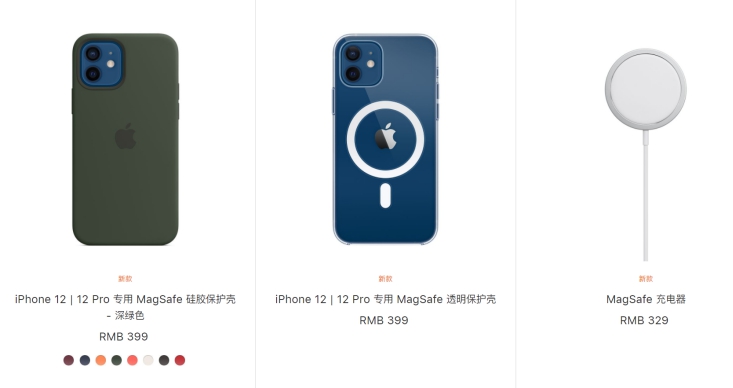 第二个新玩意儿是附着在iPhone 12 手机上的MagSafe配件,iPhone 12 系列内置了对应的感应区域,所以MagSafe 配件可以直接磁吸到iPhone 12 系列手机的背部。MagSafe 配件包括了硅胶壳,充电器以及皮革卡包。