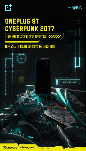 10月15日一加发布一加8T下半年旗舰手机之后,还预留了一个赛博朋克2077限定版本。该版本的模样并没有出现,仅有一个预告片。10月30日上午,一加官方正式宣布,一加8T 赛博朋克2077限定版将于11月2日发布。