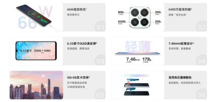 摄像头上,使用的是后置四摄方案分别是 6400 万像素的主摄,800 万像素的超广角镜头以及两颗200万像素的微距和景深镜头。在续航上,搭配的是一块3800毫安时的电池,并且支持华为Mate40 系列手机发布的66W快充。