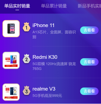 随着双十一的结束,苹果的次旗舰iPhone 11展现了惊人的号召力。在京东双十一单品实时销量榜单中,iPhone 11 牢牢占据着榜首的位置。这样一款不支持5G 且上市时间超过了一年的手机出现回春的现象,实属罕见。