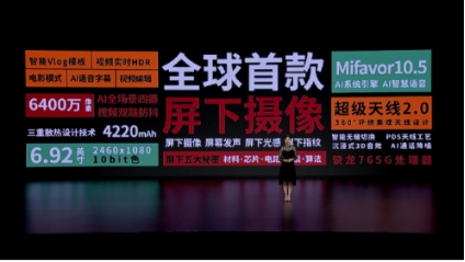 中兴的天机AXON 20 屏下摄像头版发布于今年的9月2日,是全球首款商用的屏下摄像头手机。在保证屏下摄像头正常工作的前提下,这块屏幕使用了6.92英寸的超大OLED屏,100% P3色域覆盖,支持10bit色深,可显示10亿种颜色。通过加入透明像素来实现屏下摄像技术,结合AI 完成前置拍摄。