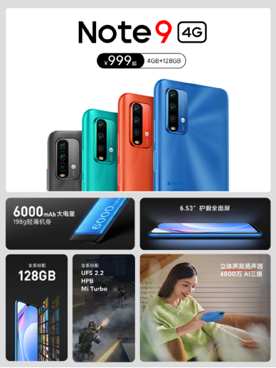 红米还发布了一款4G版本的Note9 手机,搭载了一块6.53英寸的水滴屏,配备了一块6000毫安时的大电池,而机身重量仅有198g,处理器使用的是高通骁龙662,支持4800万像素的三摄系统。售价为4+128GB 999元,6+128GB 1099元,8+128GB 1299元。