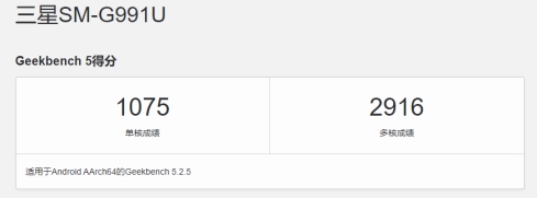 三星Galaxy S21在跑分库的代号为“samsung SM-G991U”,单核成绩1075分,多核成绩2916分。相比于此前小米11跑出来的成绩,三星S21显然还要弱一些。不过12月4日,在今天GeekBench上出现的三星另一款手机的跑分,这款手机是三星Galaxy S21+,代号为“Samsung SM-G996U”.