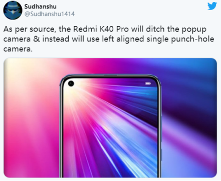 红米K40 Pro将使用打孔屏 搭载骁龙888处理器