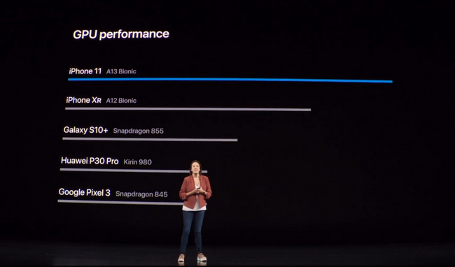 性能方面,iPhone 11使用了全新 A13仿生芯片,它号称同时拥有智能手机最快处理器和最快图形处理器。在续航方面,苹果声称iPhone 11的续航时间比iPhone XR还要高出1小时。