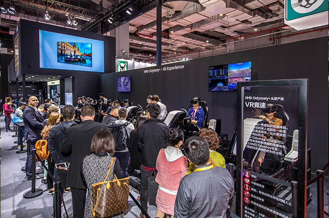三星的HMD Odyssey+头显产品更是赢得了不少参展观众的青睐,在现场的体验区,人们排起长队,争相来感受一次令人心跳加速的虚拟VR竞速体验和冬季运动体验。